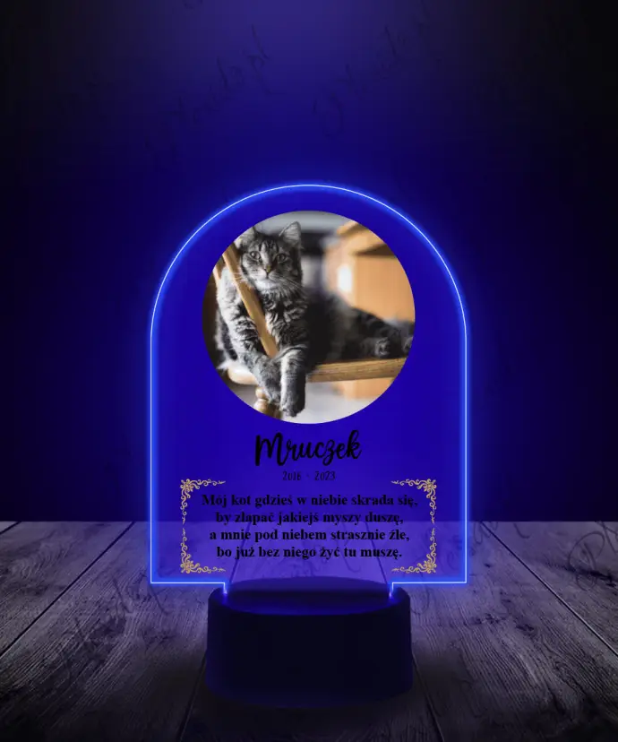 Plexido-LED-Lampe mit einem Katzenfoto-Souvenirdruck