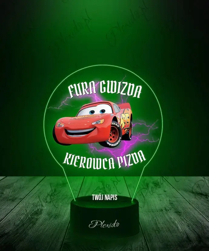 3D-Plexido-LED-Lampe mit Lightning McQueen Auto Print