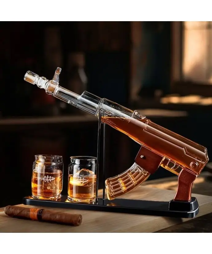 The AK-47 rifle-shaped decanter is not only a practical element for serving whiskey, but also an original table decoration. High-quality glass and precise workmanship make this set a unique addition to any collection. It is an ideal gift choice for people who value luxury accessories.