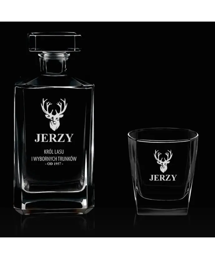 A set of a decanter with glasses for whiskey is a unique gift for every lover of this noble drink. Made of durable glass, the decanter with engraving combines elegance and functionality, creating a perfect setting for your favorite whiskey, brandy or liqueur. Thanks to the personalized engraving, you can give it a unique character, making it the perfect gift for any occasion - from an anniversary to the holidays. Our store offers a wide selection of sets that will delight with both their capacity and aesthetics. Order this elegant set today and add it to your collection or give your loved ones a unique gift.