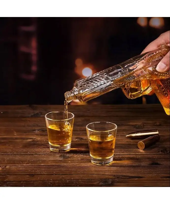 If you are looking for something unique that will attract attention and add elegance to any meeting, the pistol decanter is a great choice. Ideal as a gift, the set with glasses will be perfect for serving whiskey and other drinks. Check the product ratings, get to know the opinions of other customers and place an order in our store . We guarantee that this set will meet the expectations of even the most demanding lovers of good drinks.