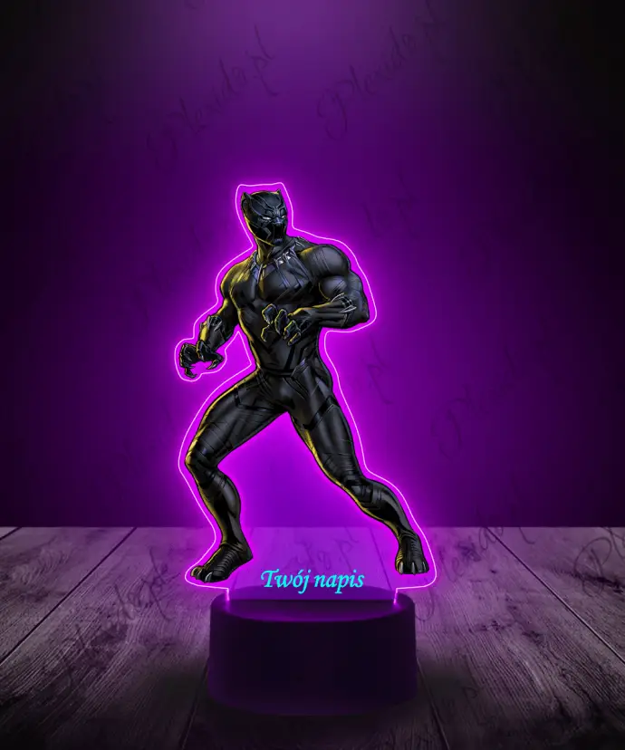 3D LED Plexido Lamp with Black Panther Print