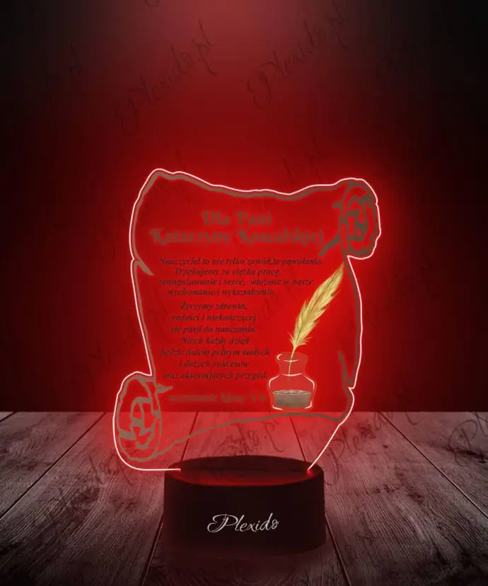 3D Plexido LED Lamp with Print Thank You for the Teacher