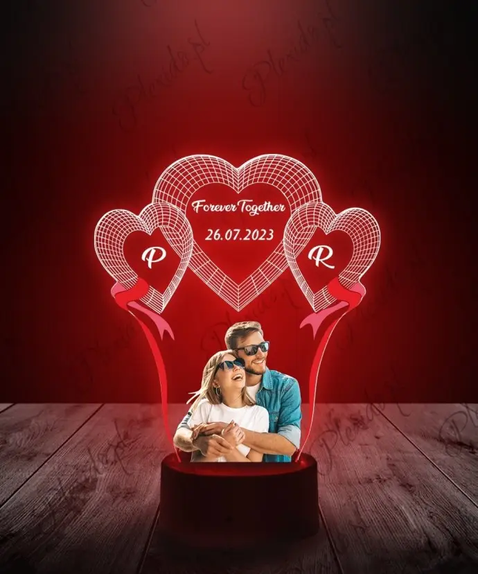 3D LED Plexido Lamp with UV Print Hearts Your Photo