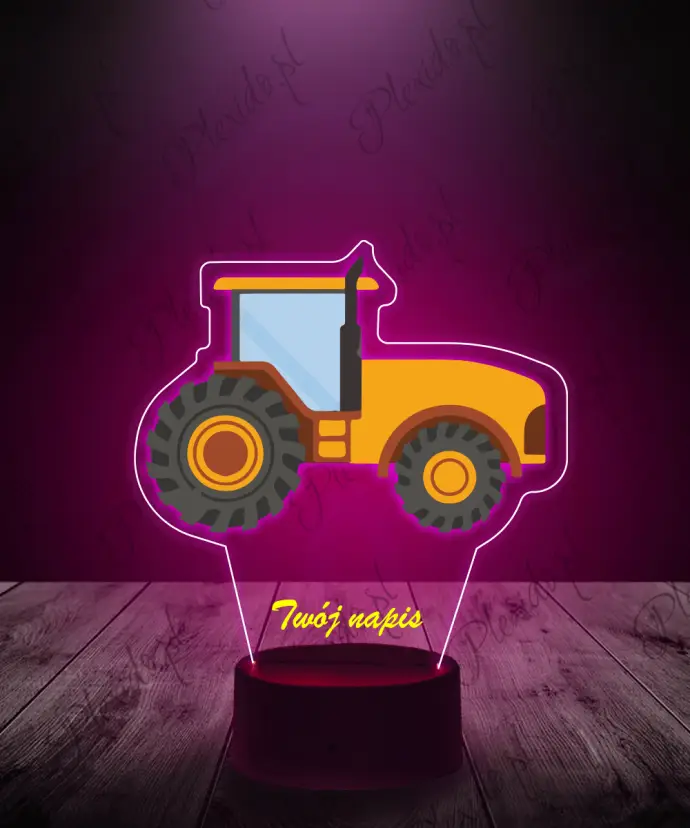 3D LED Plexido Lamp with Print Tractor Yellow