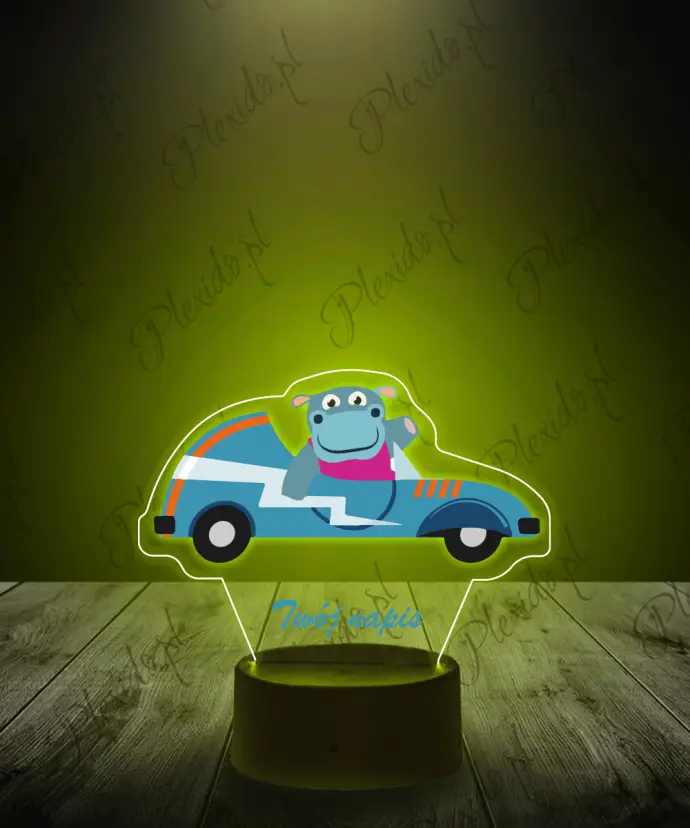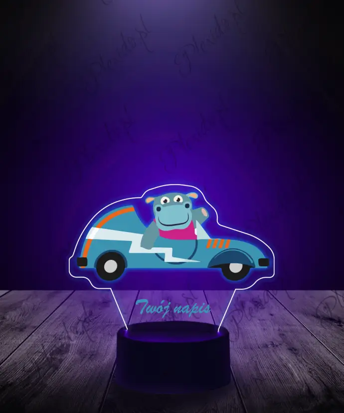 LED Lamp 3D Plexido with Print Car Hippopotamus