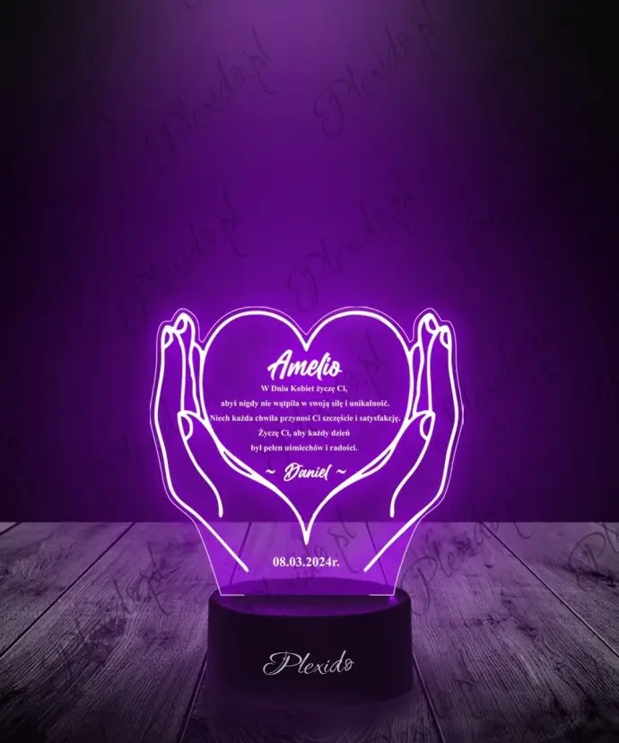3D Plexido LED Lamp Women's Day Gift Heart on the Hand