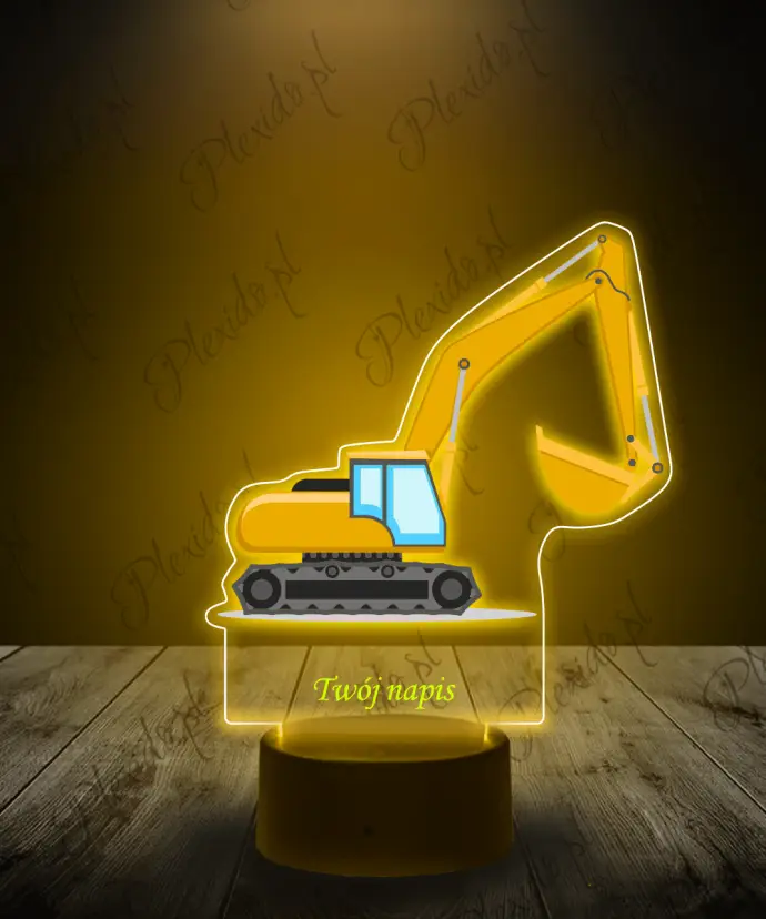 3D-Plexido-LED-Lampe mit gelbem Bagger-Aufdruck