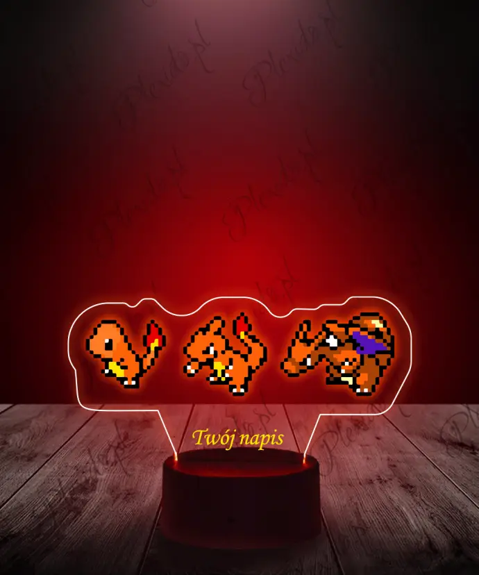 Lampka LED 3D Plexido z Nadrukiem Charmander Ewolucja