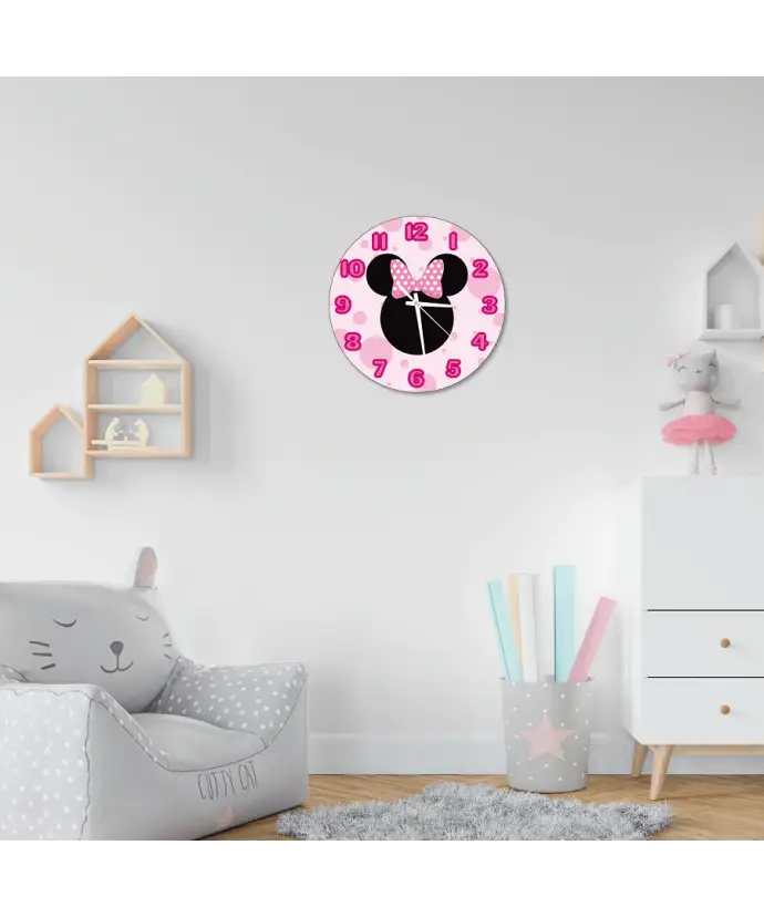 Zegar Ścienny dla Dzieci Plexido Myszka Minnie Kokarda