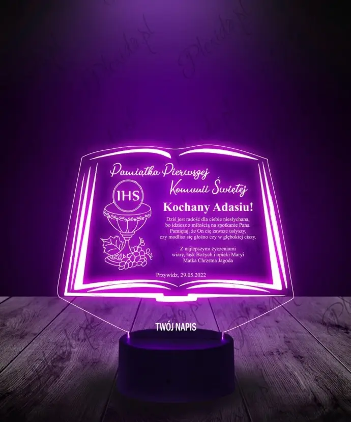 Lampka LED 3D Plexido Komunia Święta Pamiątka Książka