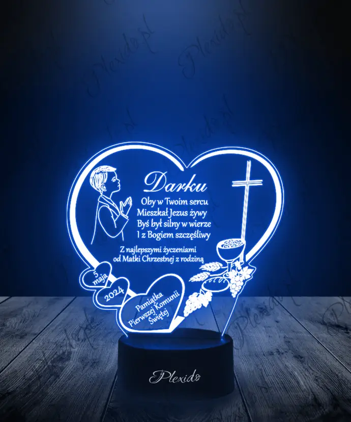 Pamiątka Pierwszej Komunii Świętej dla Chłopca Lampka LED 3D Plexido