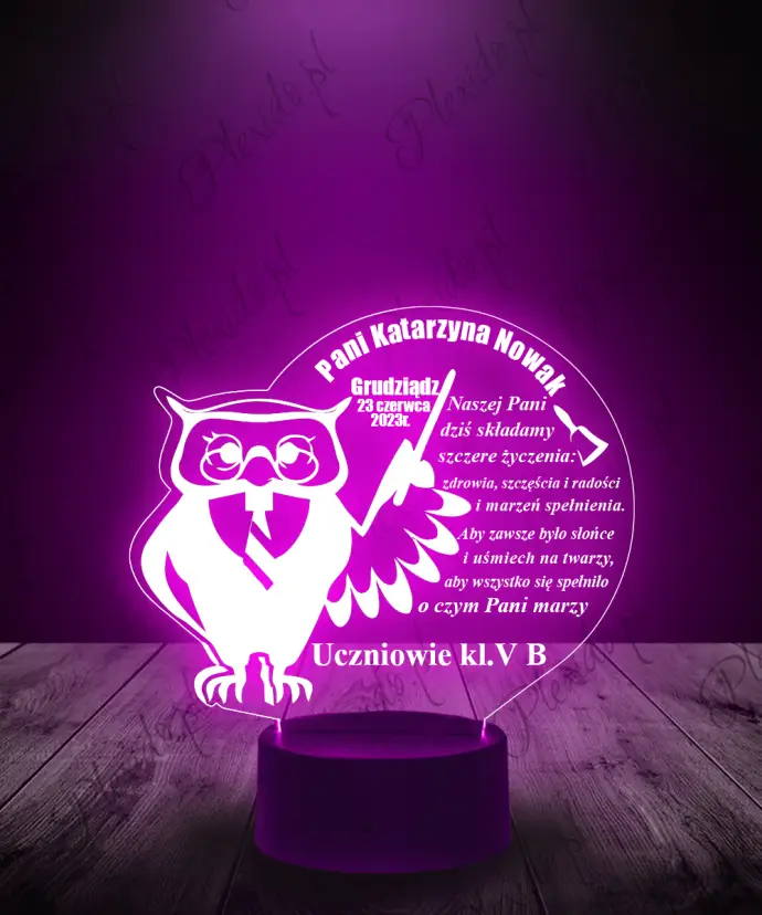 Lampka LED 3D Plexido Prezent dla Nauczycielki Sowa
