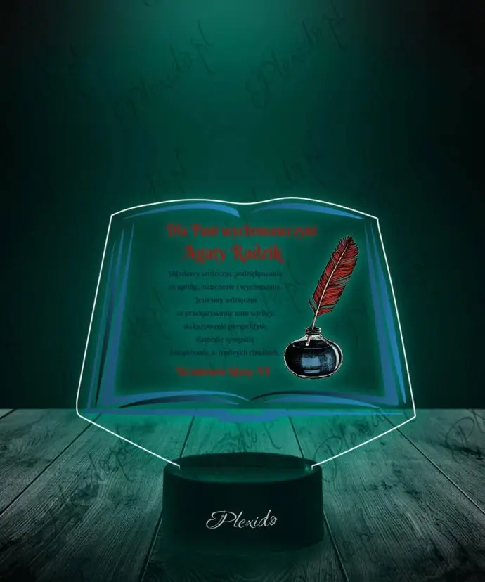 Lampka LED 3D Plexido z Nadrukiem Prezent Podziękowanie Dzień Nauczyciela