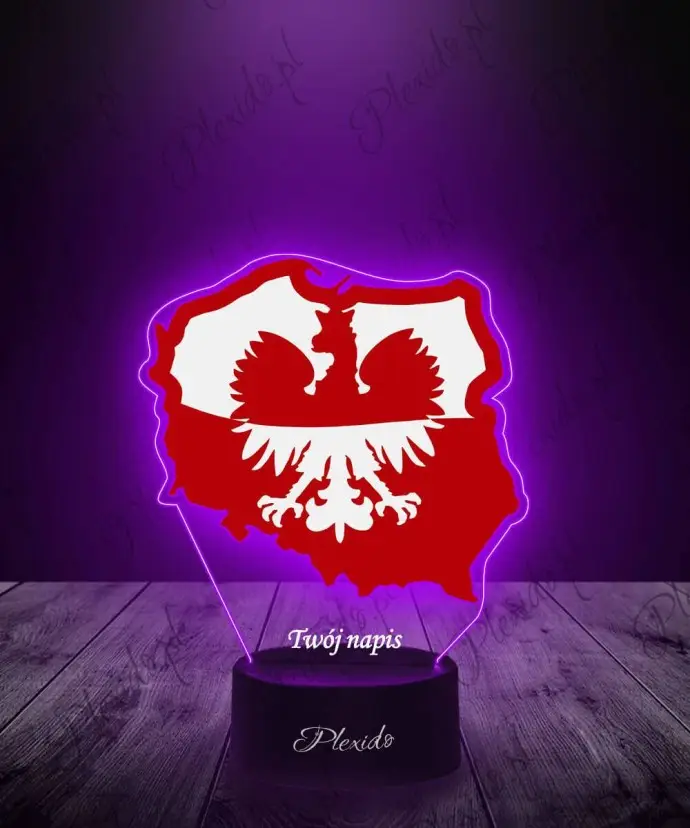 Lampka LED 3D Plexido z Nadrukiem Flaga Polski Godło