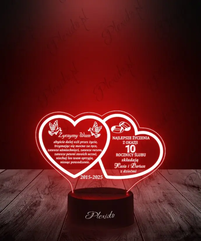Lampka LED 3D Plexido Prezent na 10 Rocznicę Ślubu