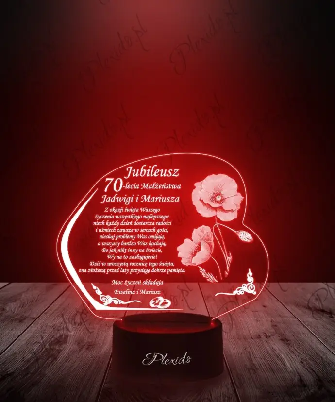 Lampka LED 3D Plexido Prezent na 70 Rocznicę Ślubu