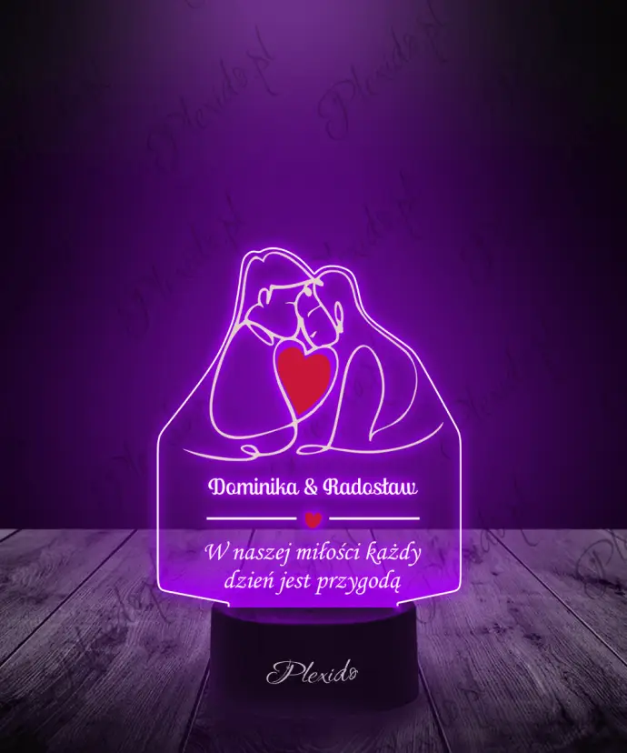 Lampka LED 3D Plexido z Nadrukiem Zakochani Pamiątka Ślubna