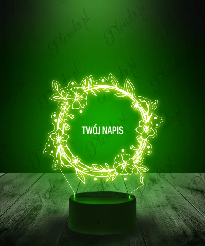 Lampka LED 3D Plexido Kwiat w Kole Twój Napis
