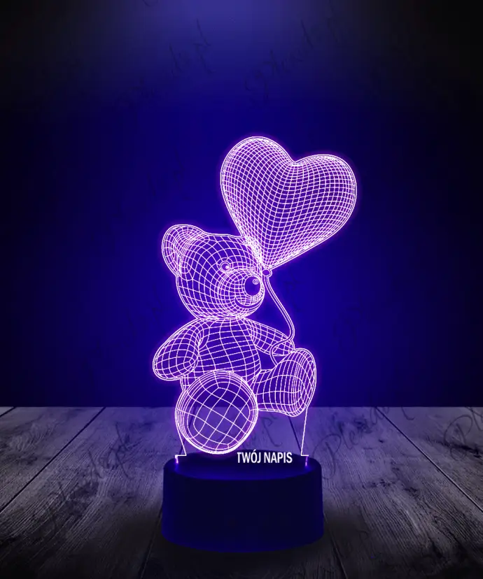 Lampka LED 3D Plexido Miś z Balonikiem Serce