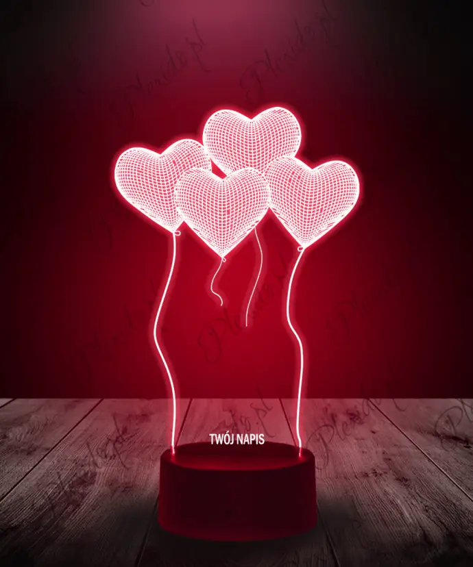 Lampka LED 3D Plexido Prezent na Walentynki Balony Serca