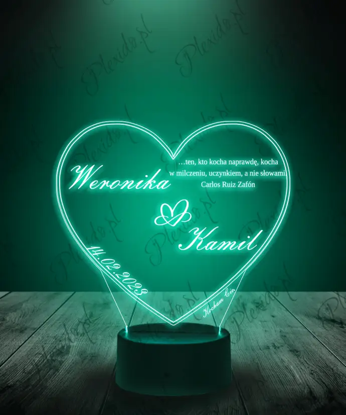 Lampka LED 3D Plexido Prezent na Walentynki Serce z Napisami