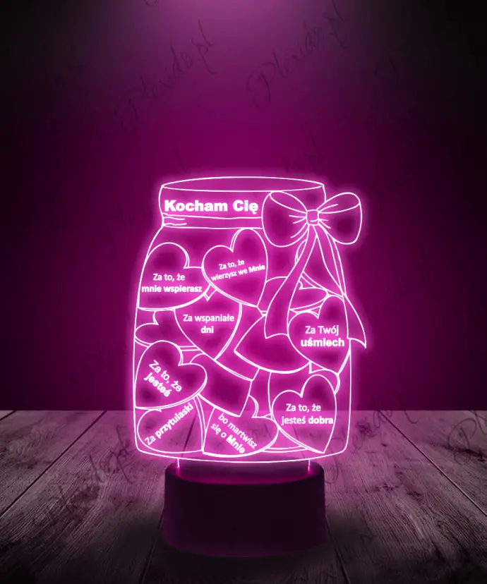Lampka LED 3D Plexido Prezent na Walentynki Słoik Kocham Cię