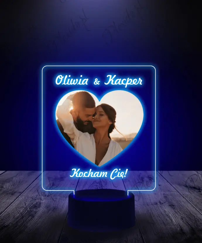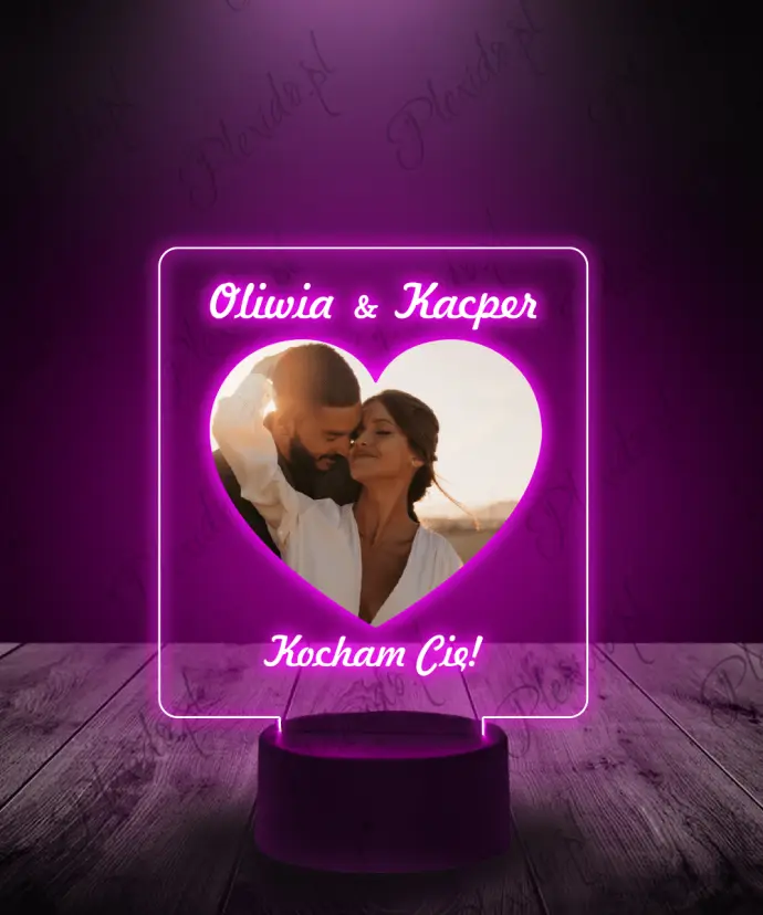 Lampka LED 3D Plexido Prezent na Walentynki Zdjęcie w Sercu