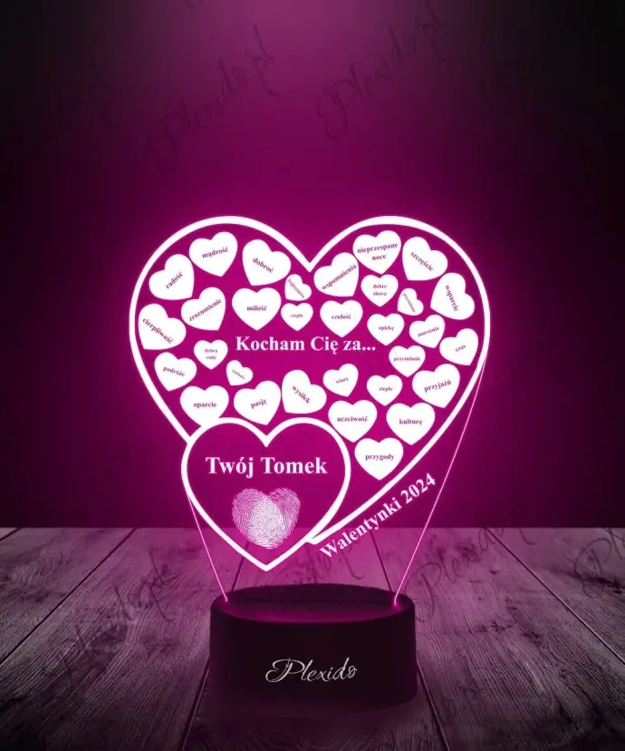 Prezent na Walentynki Lampka LED 3D Plexido Walentynki Serduszka Kocham Cie
