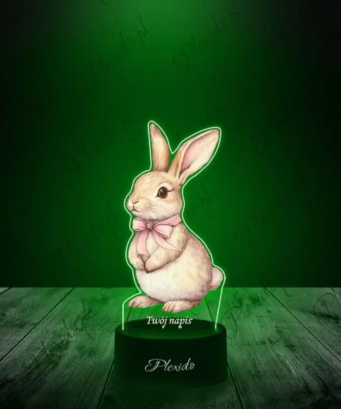 Lampka LED 3D Plexido Zajączek Wielkanocny Z Kokardką