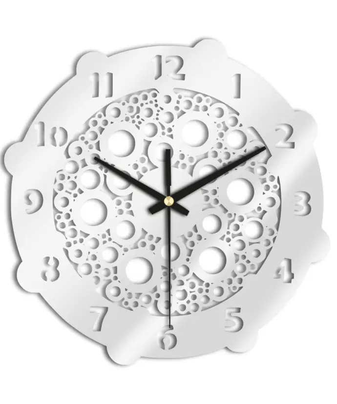 Nasz zegar wykonany jest z wycinanej laserowo powierzchni ze szkła organicznego, która jest zdecydowanie bezpieczniejsza oraz bardziej wytrzymała niż zwykłe szkło.
