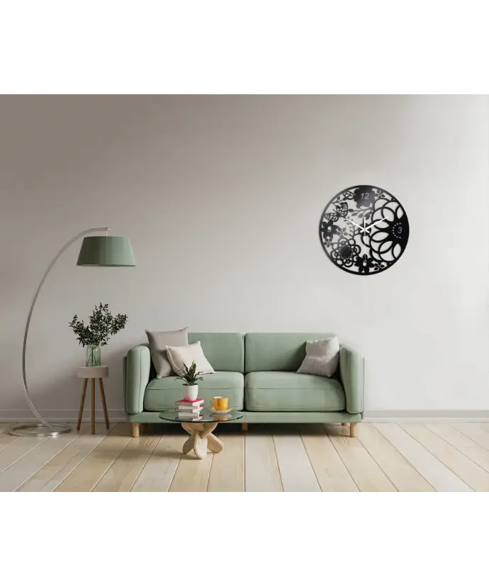 Zegar Ścienny do Salonu Plexido Czarny Kwiatowy