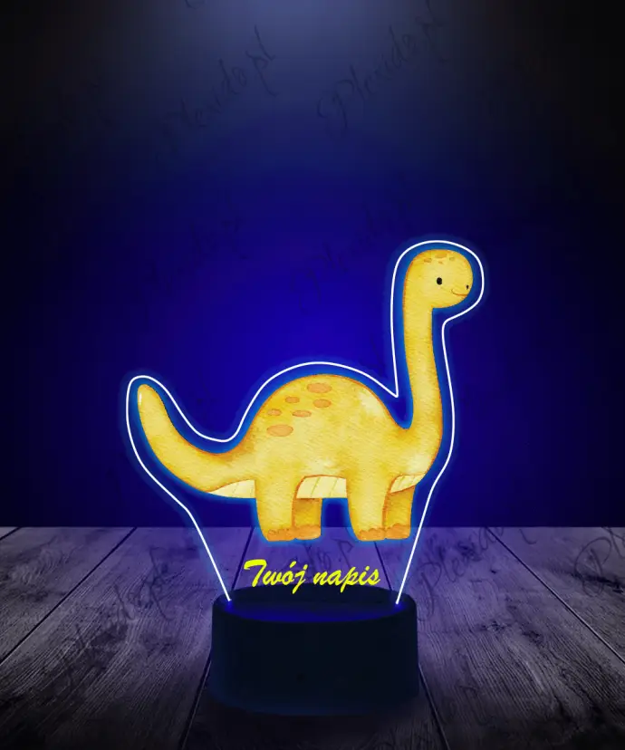 Lampka LED 3D Plexido z Nadrukiem Dinozaur Żółty