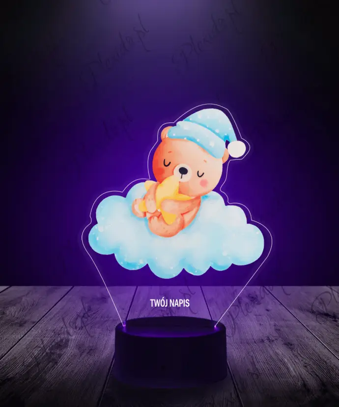 Lampka LED 3D Plexido z Nadrukiem Miś na Chmurce