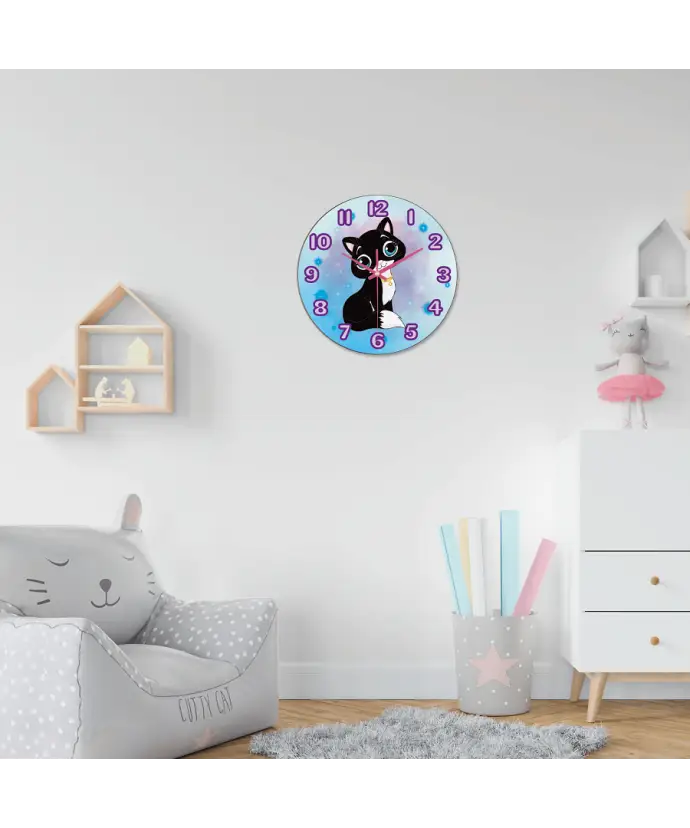 Zegar Ścienny dla Dzieci Plexido Kotek Czarny Kot