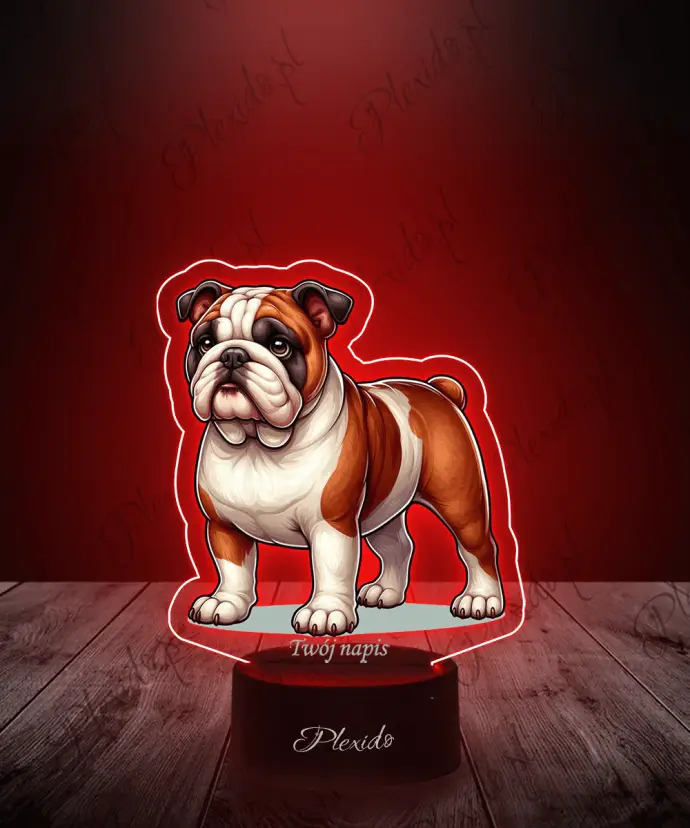 3D-Plexido-LED-Lampe mit Aufdruck einer englischen Bulldogge