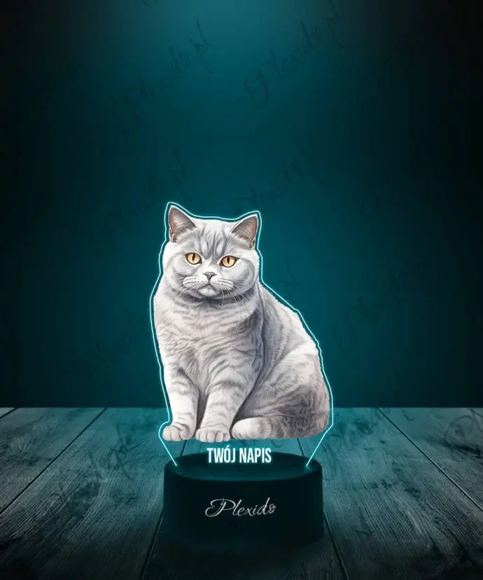 3D-Plexido-LED-Lampe mit britischem Katzenaufdruck