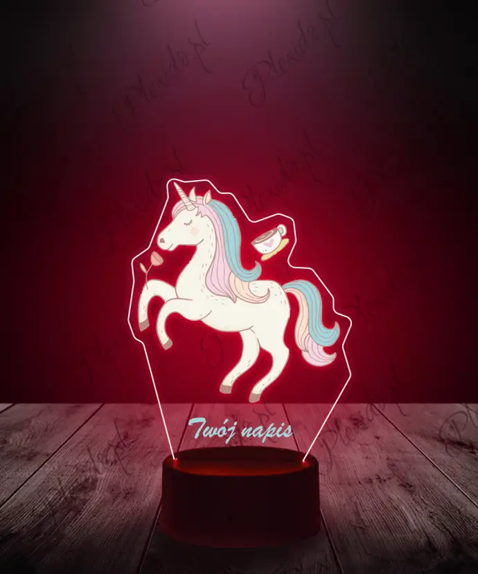 3D-Plexido-LED-Lampe mit Einhorn-Rose-Aufdruck