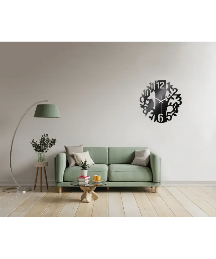 Plexido Wohnzimmer-Wanduhr, schwarzer Baum mit Vogel