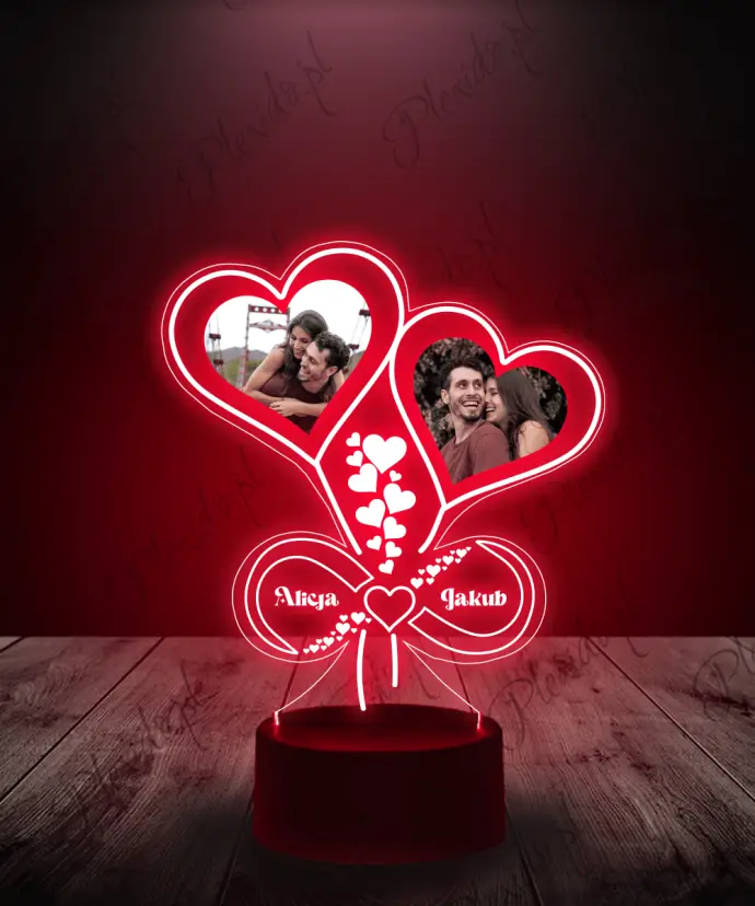 3D-LED-Plexido-Lampe als Valentinstagsgeschenk mit einem Foto eines Herzens