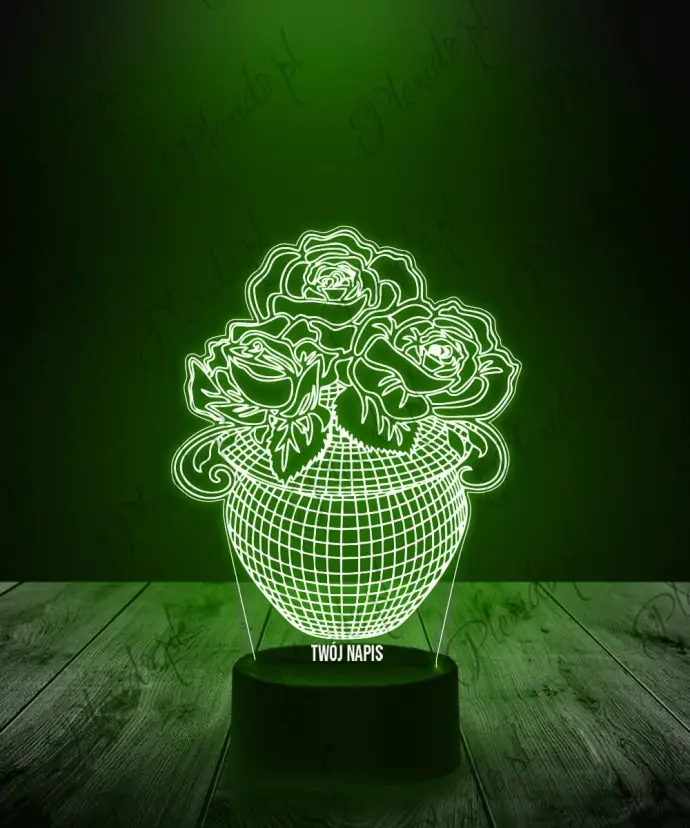3D-Plexido-LED-Lampe Rosen Blumen in einer Vase