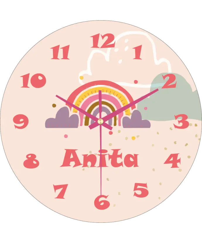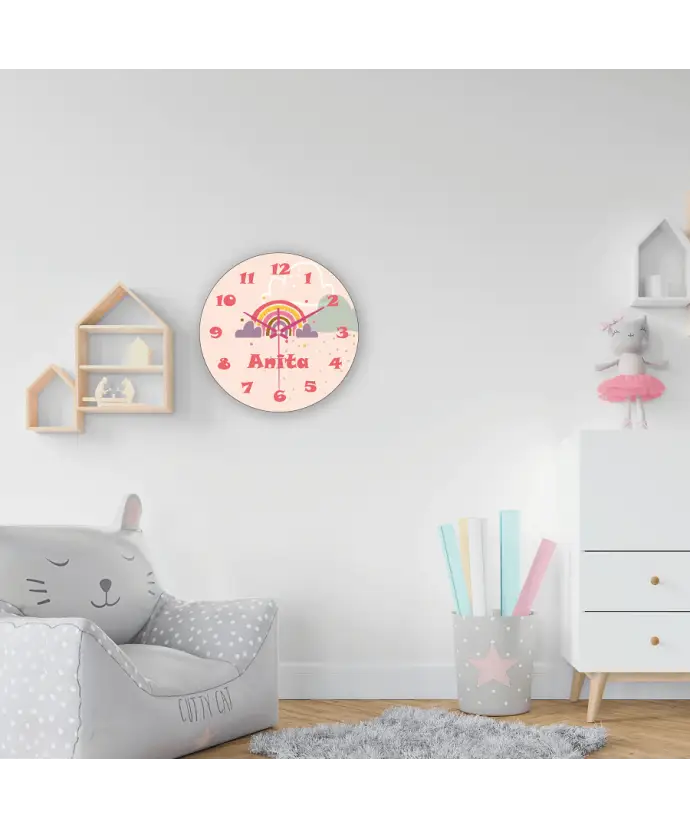 Plexido-Wanduhr für Kinder mit dem Namen Regenbogen